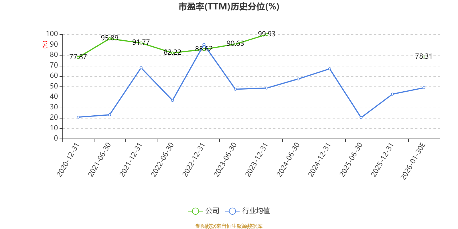 市盈率、市净率为负时,不显示当期分位数,会导致折线图中断。