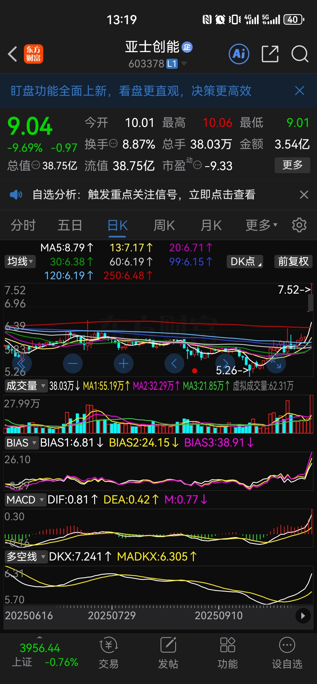 参考一下亚士创能的走法,如果接下来一直扭转反弹,就能像亚士创能一样后面有七八个涨