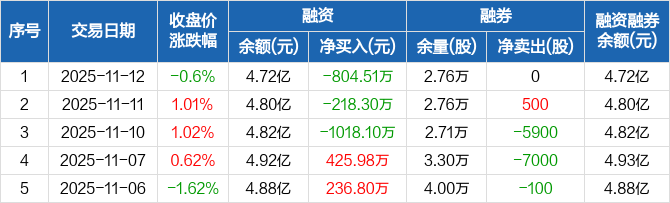 金杯汽车:融资余额4.72亿元,创近一年新低(11-12)