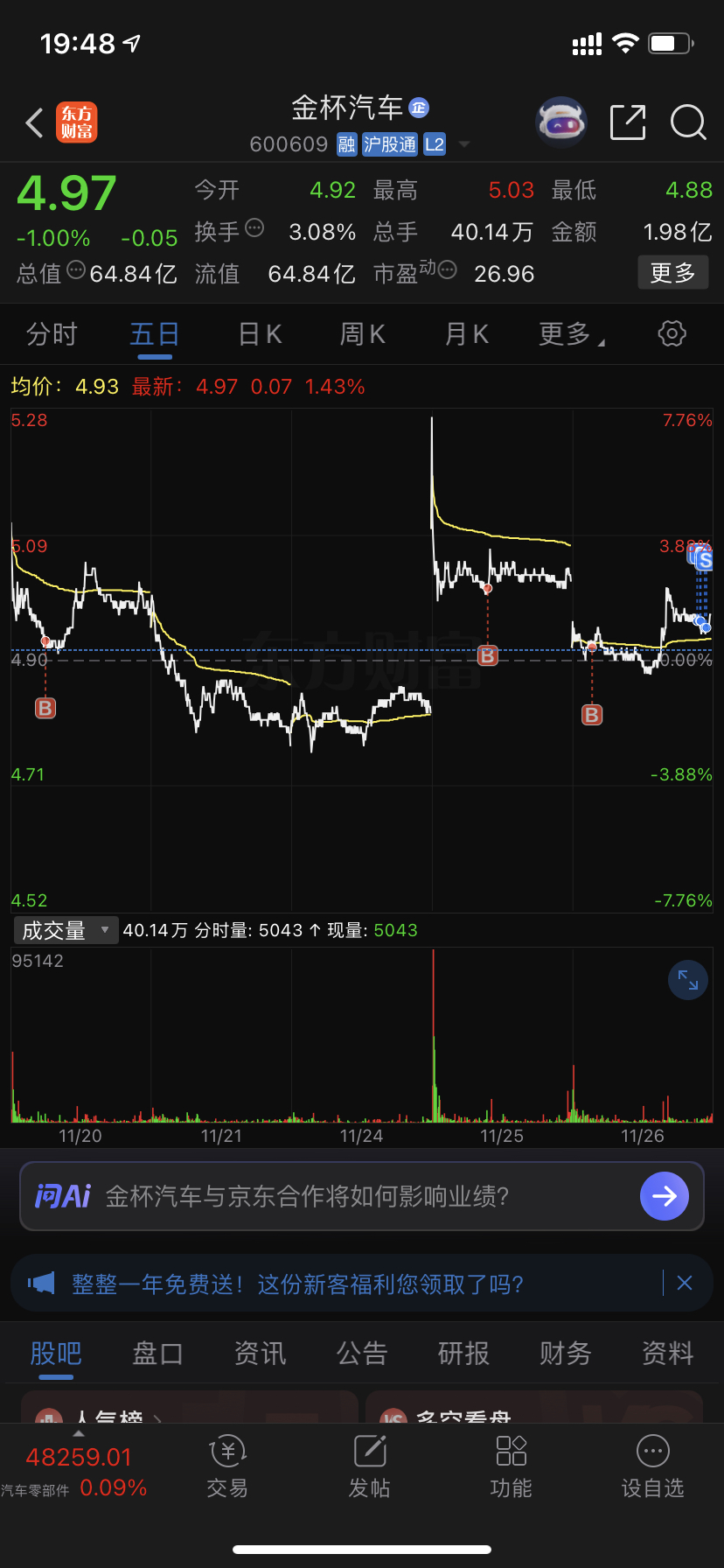 $金杯汽车(SH600609)$ 清得差不多了,这个股不行