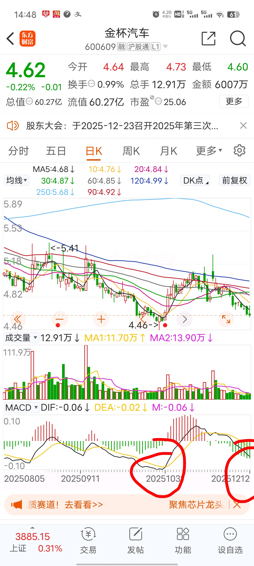 $金杯汽车(SH600609)$ 这一次要跌破4元,看图