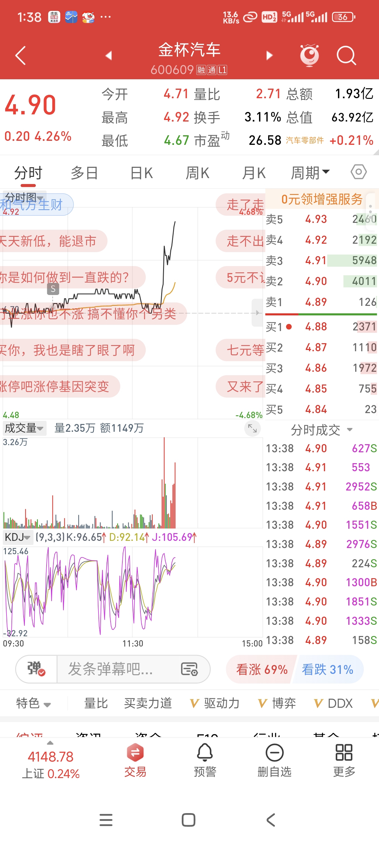 $金杯汽车(SH600609)$ 差我这三瓜两枣了