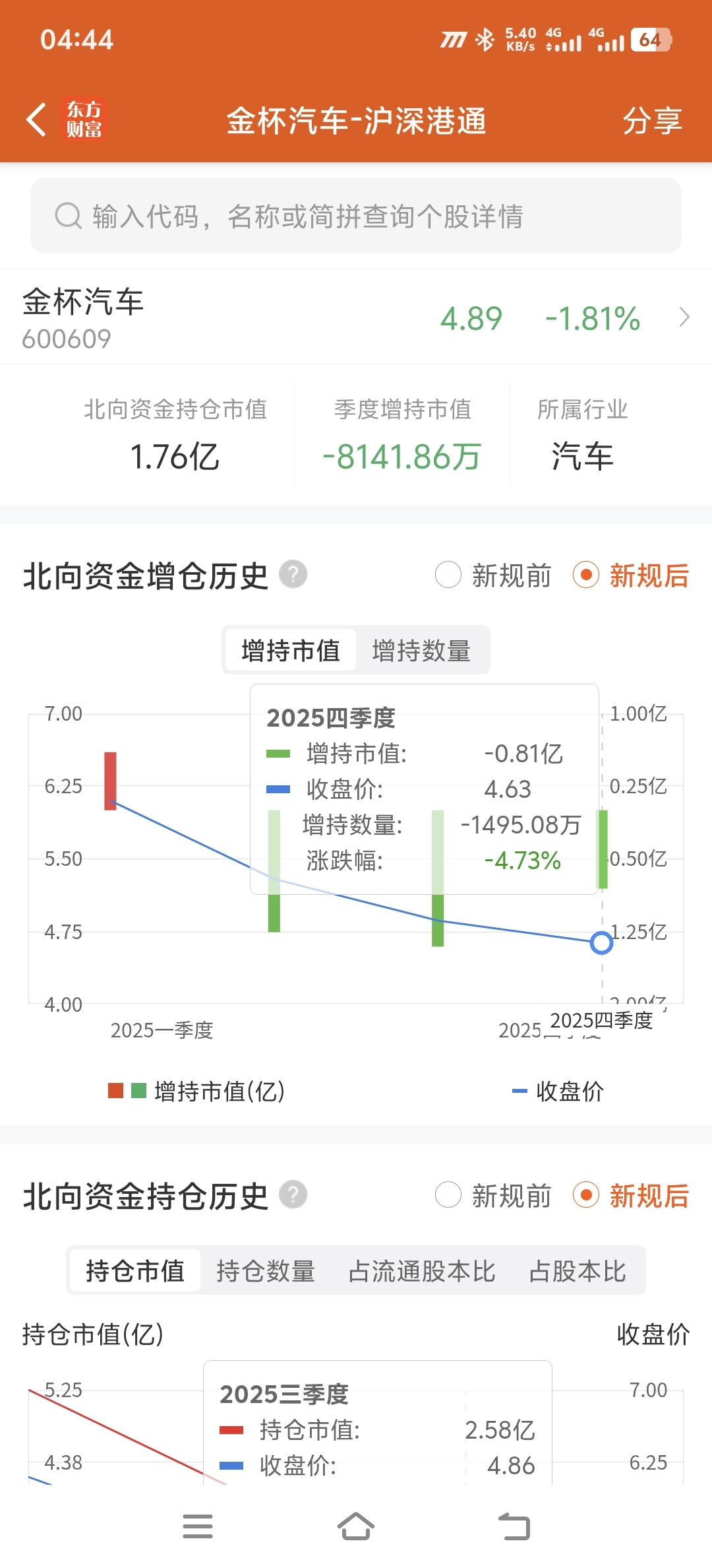 $金杯汽车(SH600609)$ 金杯下跌的罪魁祸首:港资,全是追涨杀跌的主,高位接盘后,低位清仓式割肉出局,第四季度又减持8000千万,从年初的持仓五六个亿,到现在只持仓一个多亿,预计26年一季度港资应该都割肉了,要等年报出来4月份的时候,如果港资全走了就可以进了,港资一天走,金杯一日不振