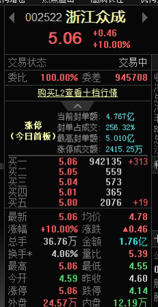 002522浙江众成强势封板#强势机会# #股市怎么看# #炒股日记# #收盘点评# #投资干货# $中毅达(SH600610)$ $保变电气(SH600550)$