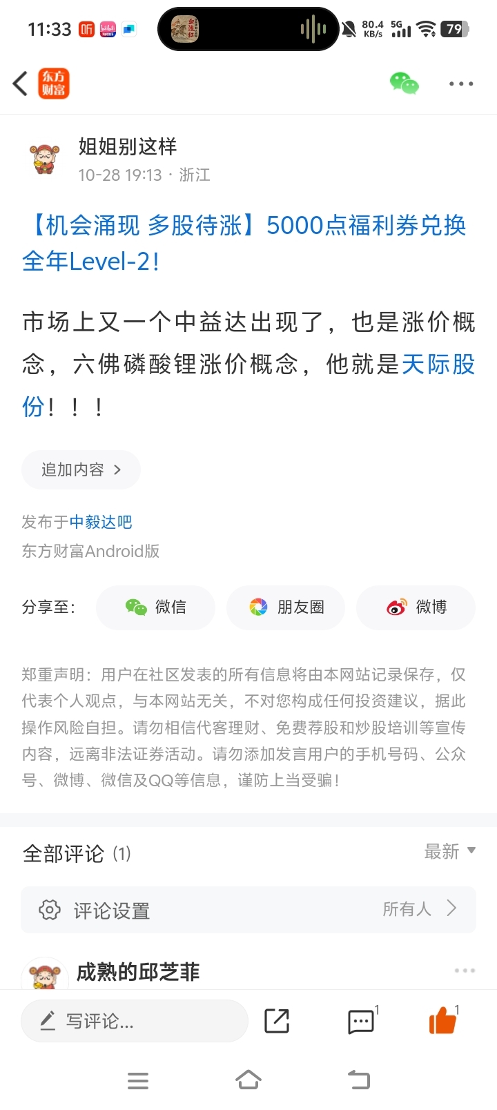 温馨提示: 1.根据《证券法》规定,禁止编造、传播虚假信息或者误导性信息,扰乱证券市场;2.用户在本社区发表的所有资料、言论等仅代表个人观点,与本网站立场无关,不对您构成任何投资建议。用户应基于自己的独立判断,自行决定证券投资并承担相应风险。《东方财富社区管理规定》
