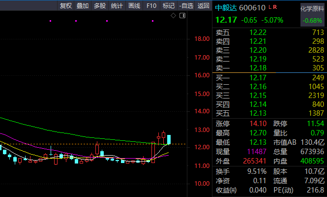 临近尾盘手痒买入了点600610中毅达,买入逻辑是K线技术指标值得小搏一下。上周五强势涨停后,周一放量十字星,周二继续收缩量小阳,今天收缩量中阴,但最低价始终没有破周一十字星的最低价,给人一种可能即将分歧转一致的形态,明天如果能有效突破13元左右,就算是技术形态成立。当然,这也有可能是庄家有意做出的K线图,专门吸引所谓的技术派。不管了,先买点再说,明天只要有效跌破12.12就走了。