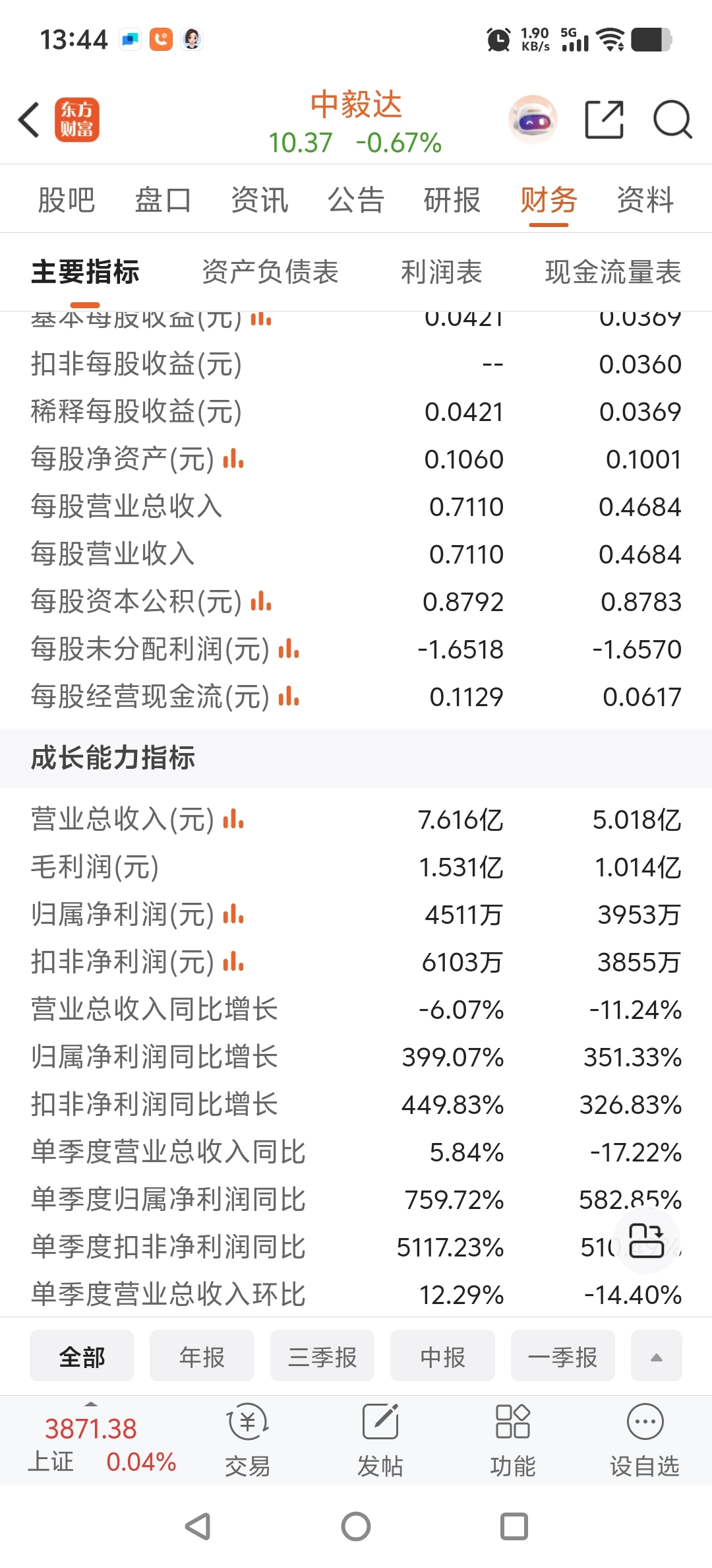 $中毅达(SH600610)$