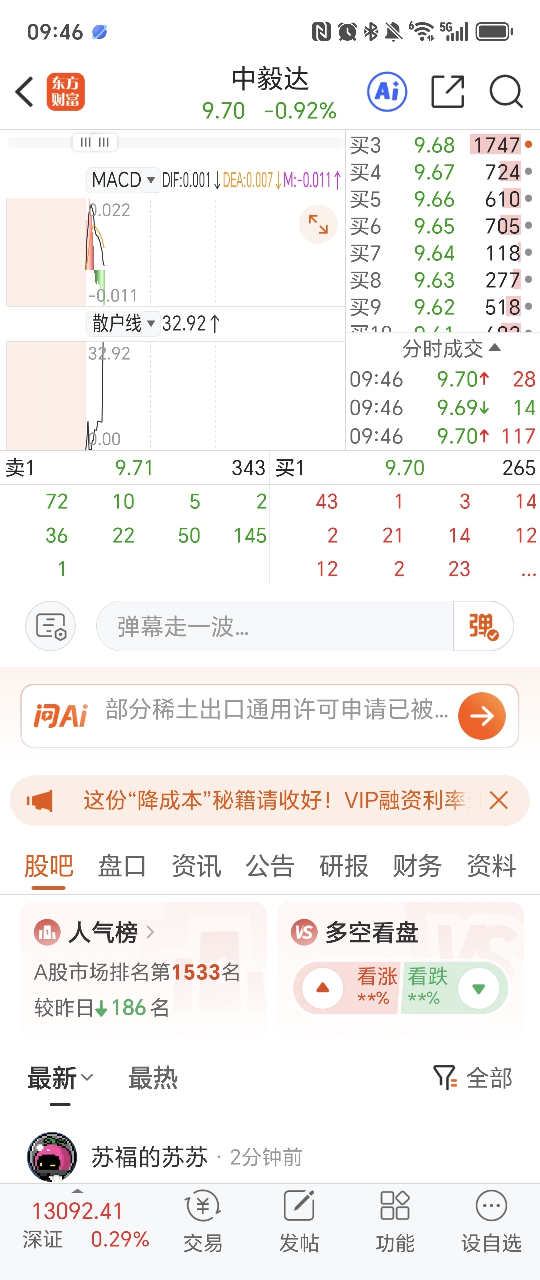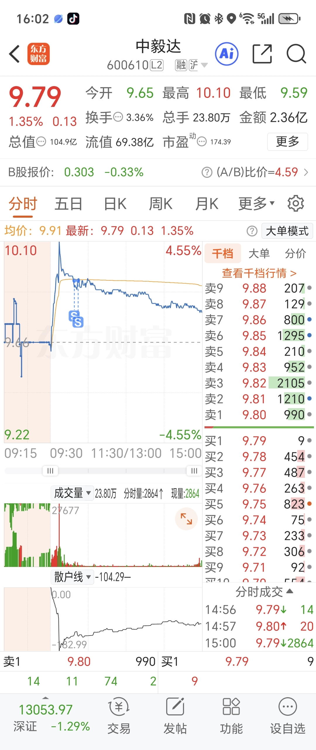 $中毅达(SH600610)$ 看着这散户线,卖的我心里特别安心,幸好跑了,散户兄弟们真勇敢,