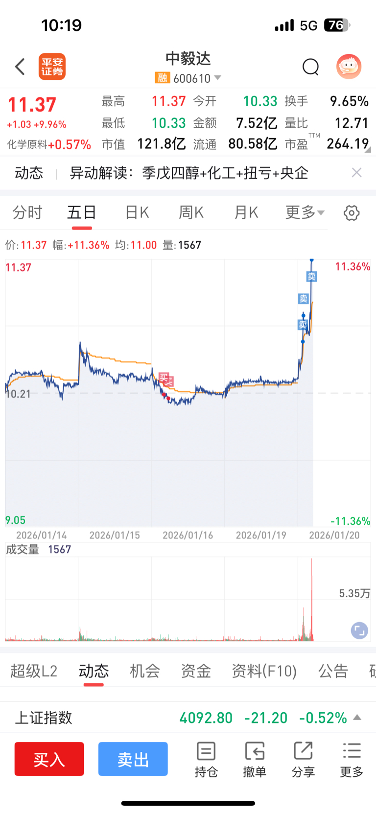 $中毅达(SH600610)$ 满意的答案,终于涨停板了,止盈了