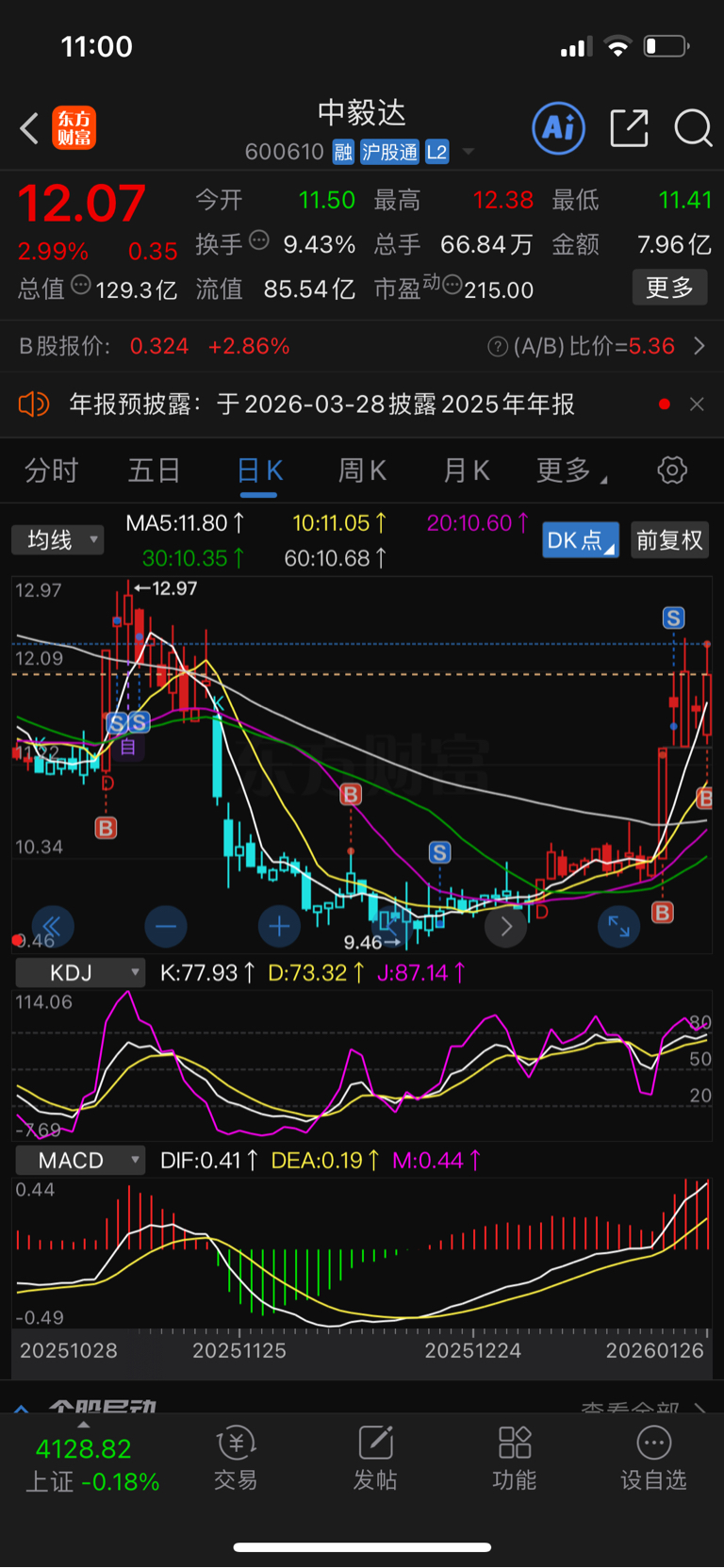 $中毅达(SH600610)$ 我上周三就卖了中毅达,换了长电,结果中毅达涨,长电大跌吃面,今天又买回中毅达,又吃了面