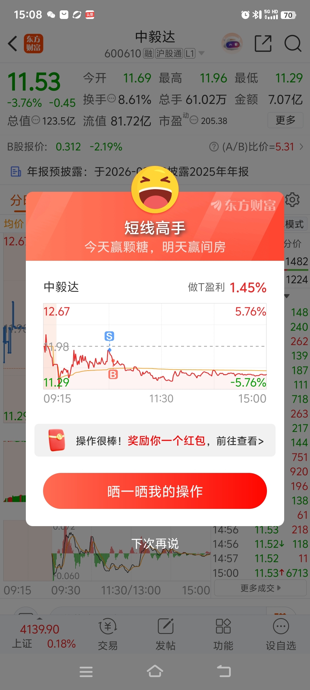 $中毅达(SH600610)$ 做做T吧,降低一点成本