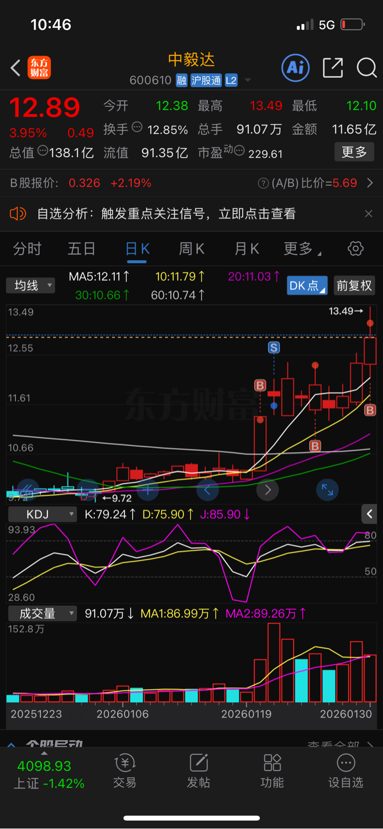 $中毅达(SH600610)$ 高位补仓,一把亏光