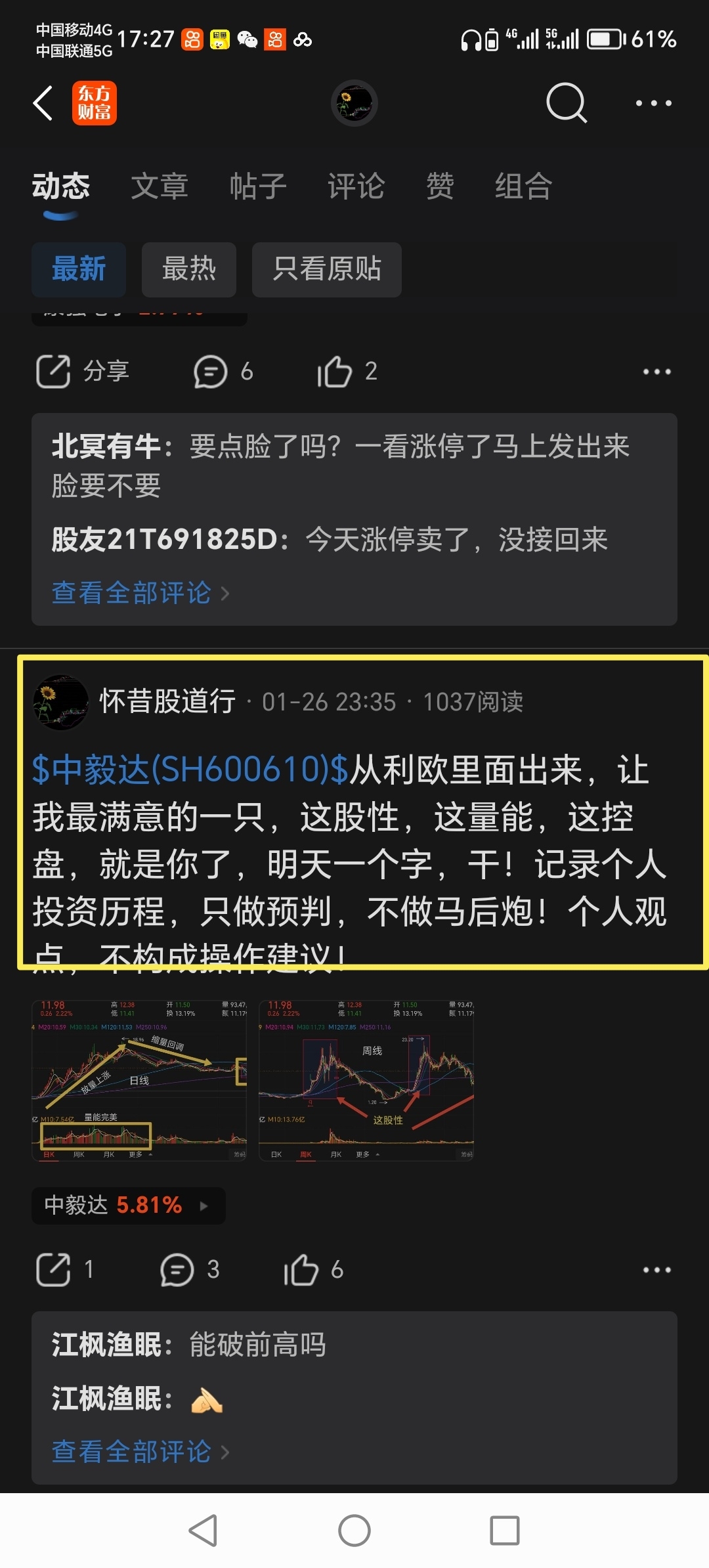 $中毅达(SH600610)$ 红宝子已经排上人气榜第一了,还有啥好说的,下周化工板块起飞,老龙头中毅的量能周五已经开始放出来了,非常漂亮,估计红宝要走一字板了,中毅自然也不会差,大口喝酒大块吃肉走起!车上的拿好了,坐稳了,只做预判不做马后炮,记录个人投资历程,观点不构成操作建议!