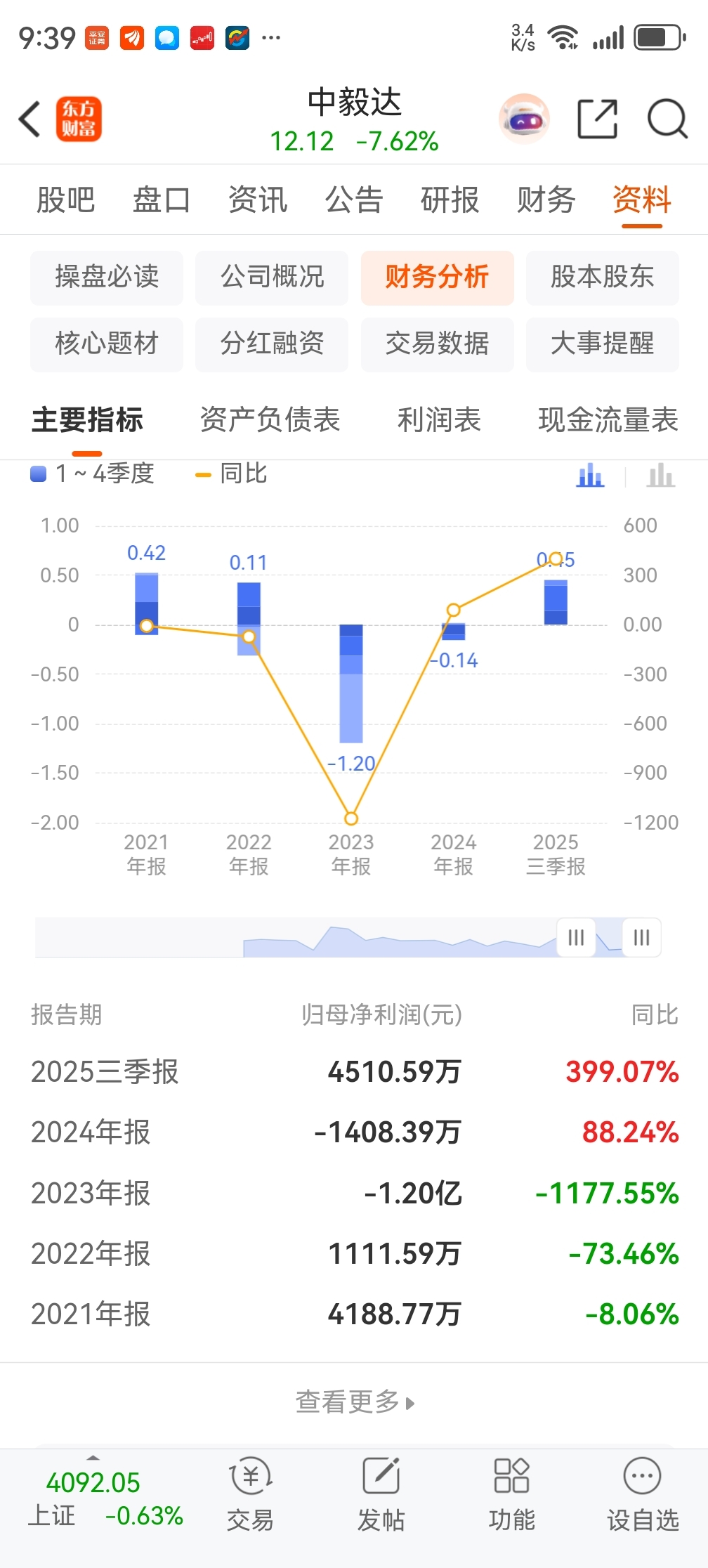 $中毅达(SH600610)$ 利润大增