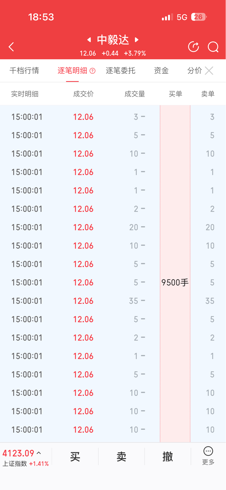 $中毅达(SH600610)$ 尾盘集合竞价谁一下买了9500手
