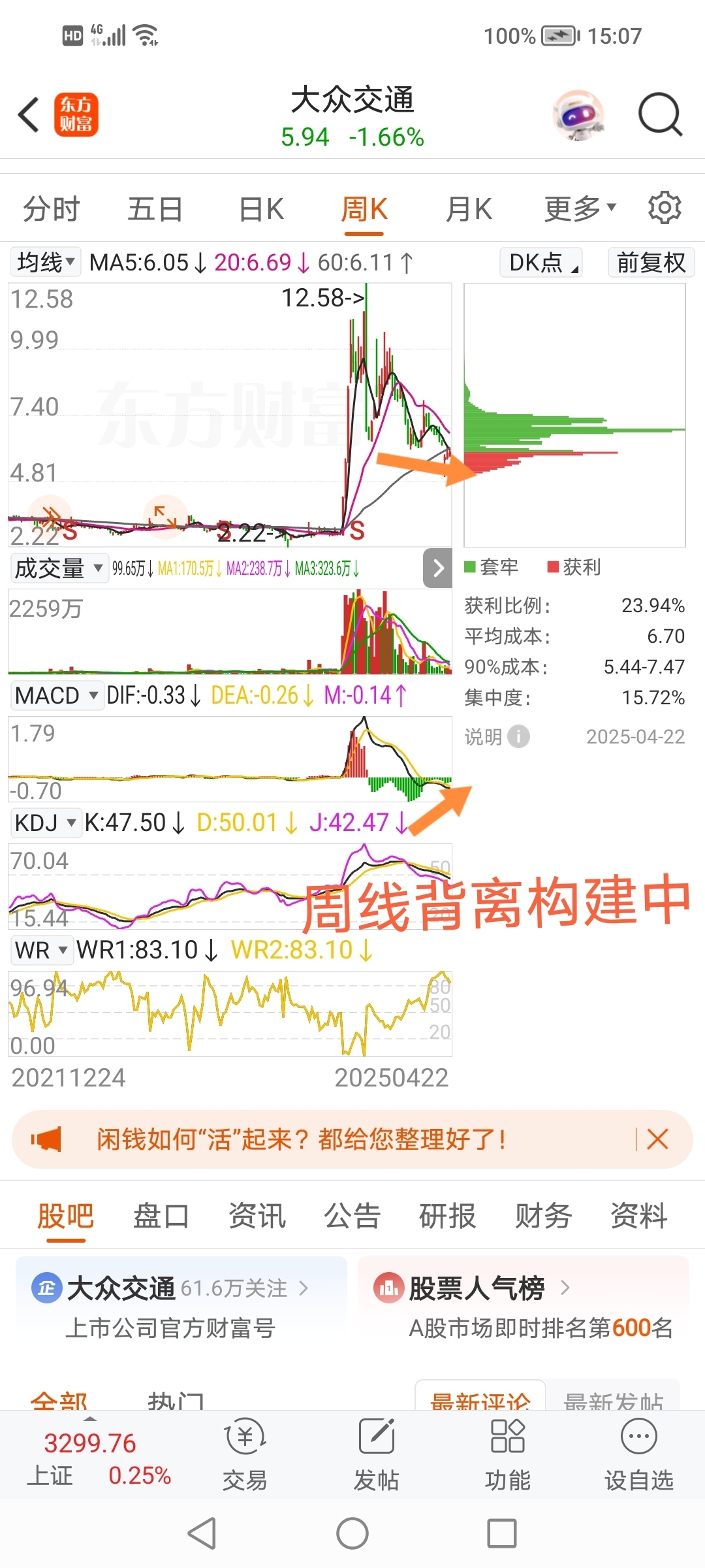 今天大众走势一般,15F重拾升势看明天能否带动30F,60F水上金叉,日线量能和K线像人为的很刻意,量缩价包含,指标依然向好,周线底背构建中。结论:明天最大概率收阳线,本人目标未实现继续持有中。