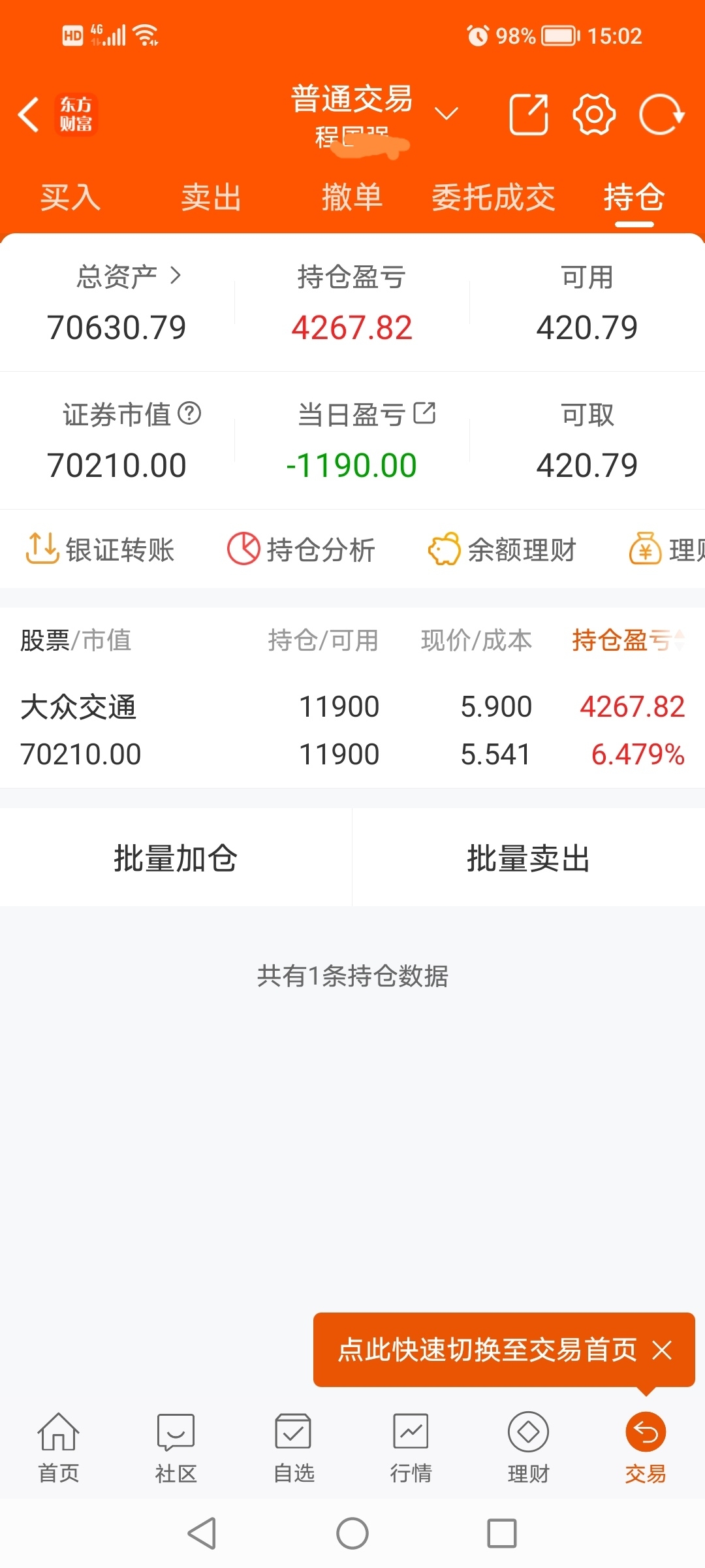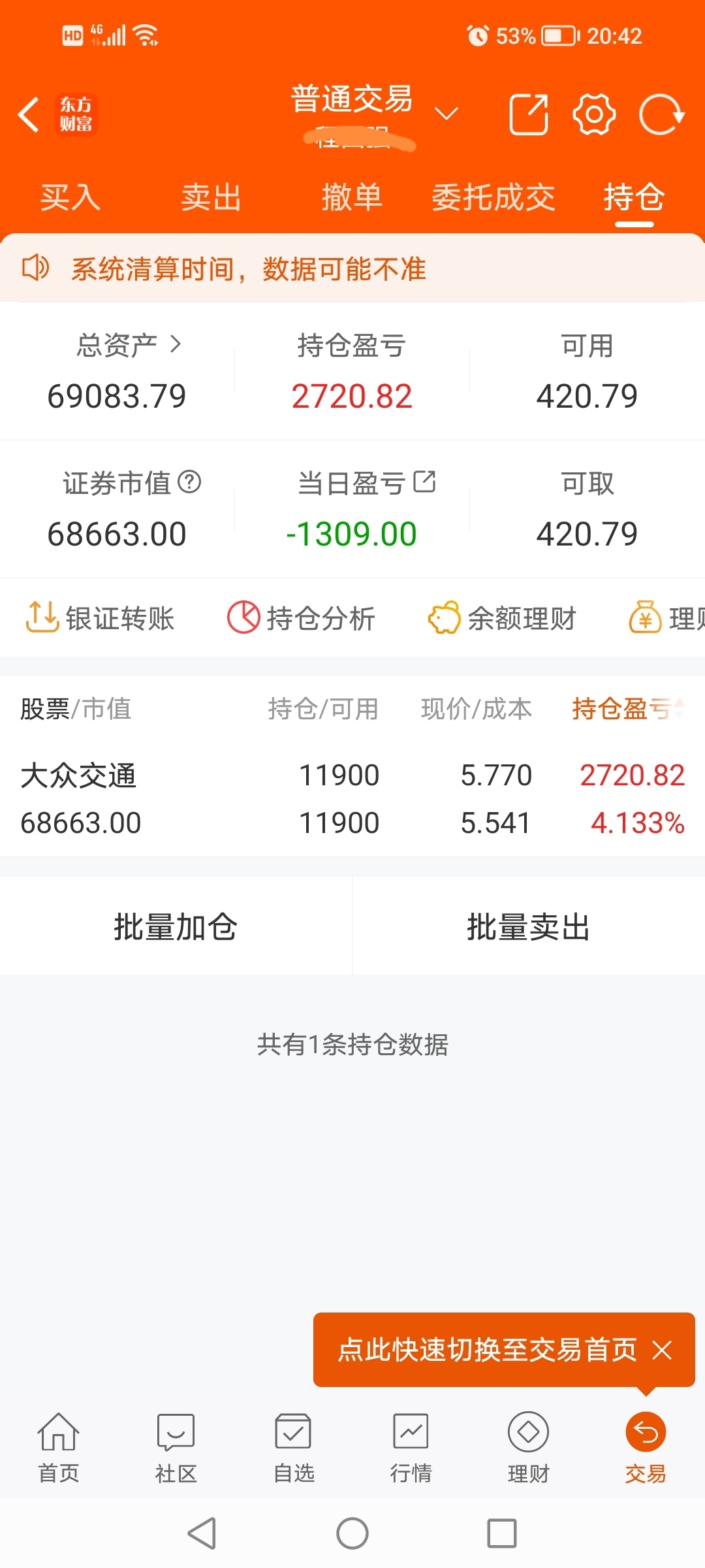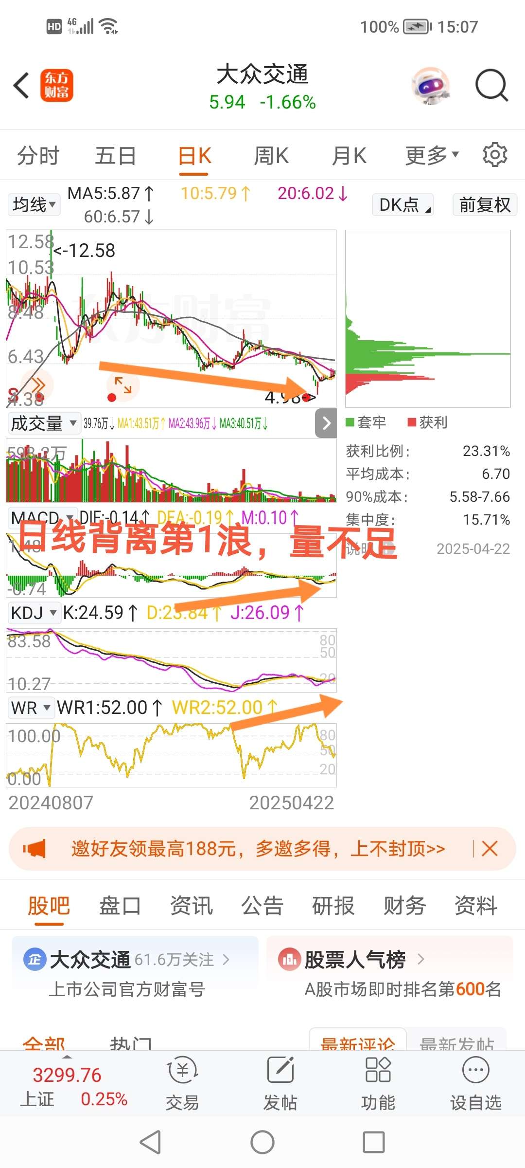 今天K线反包,收盘差点意思。成交比昨天稍大不太明显,有向好意思但不明显,总体还没走坏。日线macd红柱继续缩短,5,10,20金叉,看后面能否倍量中阳确立向上。否则可能继续震荡,背离后第一阶段大部分如此,而且水下本也弱势,买入持有理由未变,继续中。