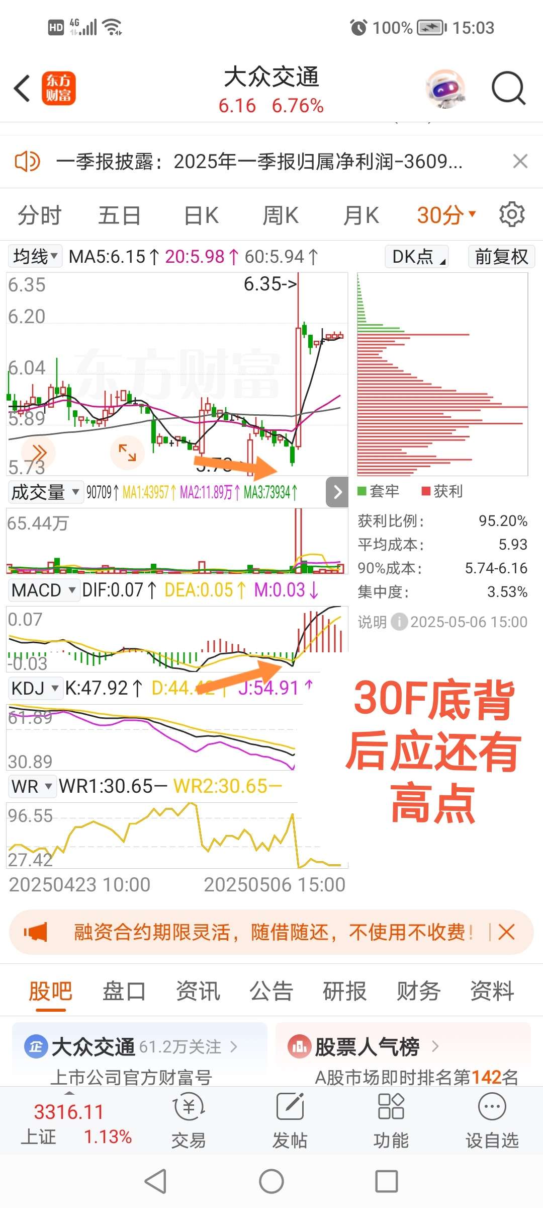 30F线底背离第一波,回调后应有高过6.35点出现(一般情况下)