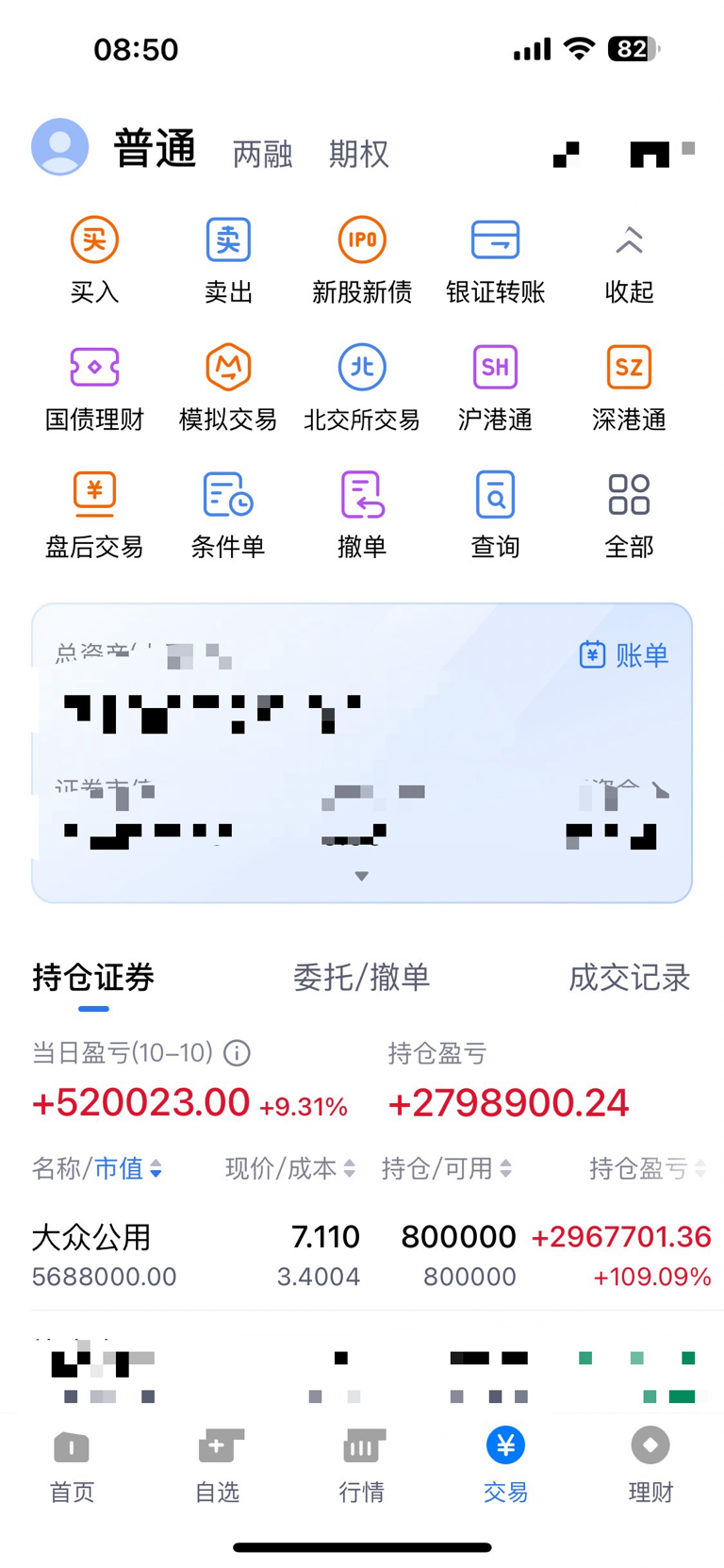 $大众交通(SH600611)$ 去年交通没涨的时候加了自选,没有选公用,结果你开始涨了我没追上,退而求其次买了公用,期间亏了很多,但是我没放弃,在去年924加仓,去年10月大涨我格局从赚钱到今年4月亏钱,我继续格局,现在终于静待花开