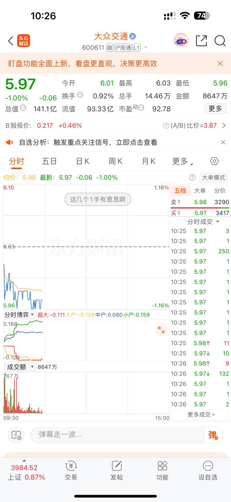 $大众交通(SH600611)$ 哈哈,这一手一手的,在试机器嘛