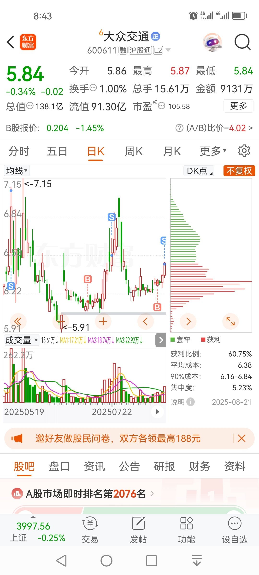 $大众交通(SH600611)$ 星期一动筷子兄弟们,夹主力看上的那块大肥肉,吃的香有嚼劲,很多套牢熬不住了
