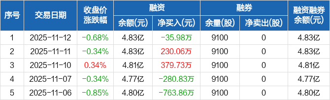 大众交通:融资净偿还35.98万元,融资余额4.83亿元(11-12)