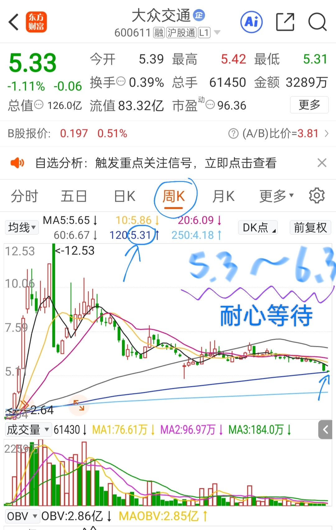 120周线支撑位5.31,这波调整大概率是到位了!后续反弹的压力位在6.3附近。大家记得见好就收!