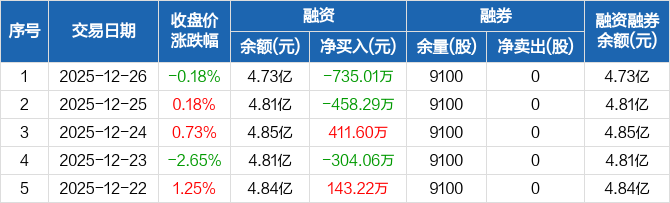 大众交通:融资净偿还735.01万元,融资余额4.73亿元(12-26)