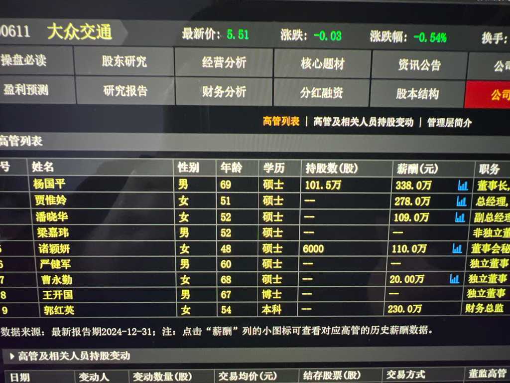 $大众交通(SH600611)$ 公司高管 几乎不持股,原因应该都清楚