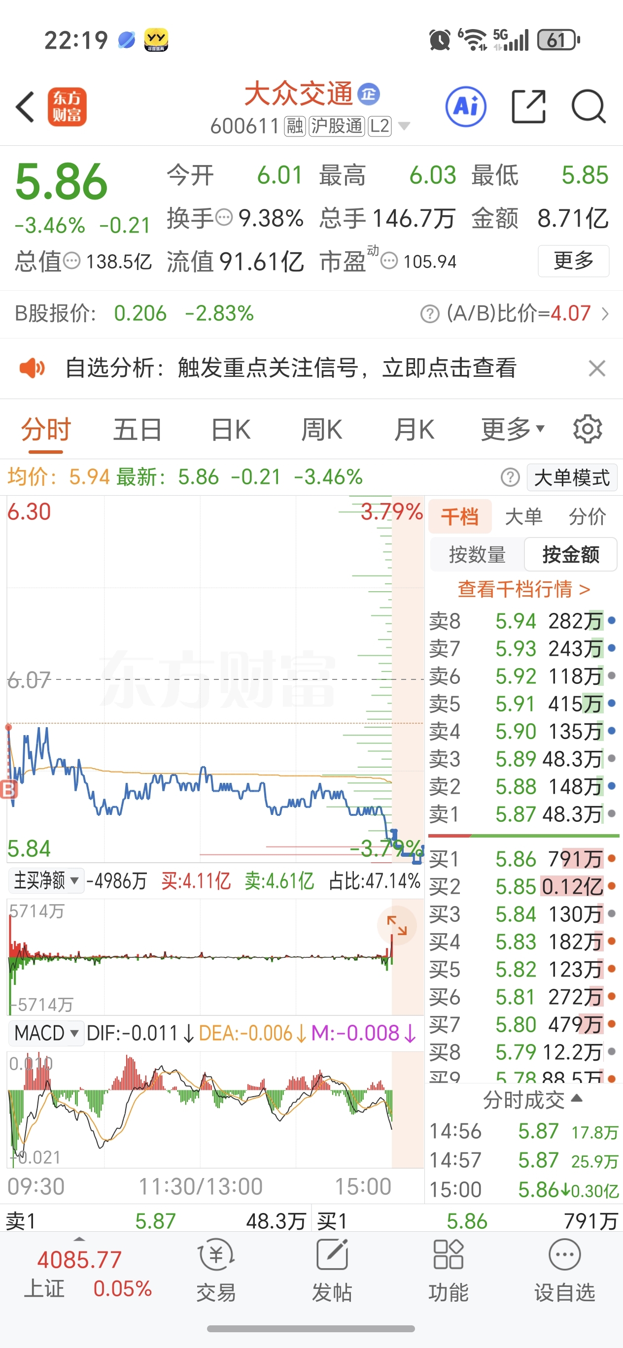 $大众交通(SH600611)$ 把我高高滴挂在了山上