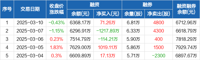 老凤祥:融资净买入71.26万元,融资余额6368.17万元(03-10)