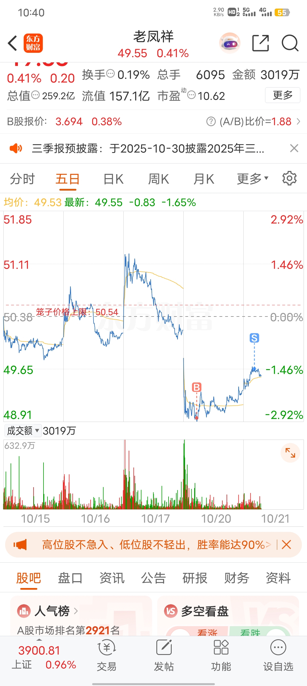 $老凤祥(SH600612)$ 太慢了,出去打个野再回来