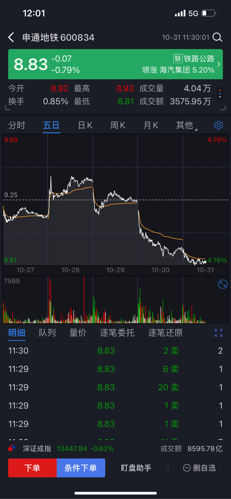 $老凤祥(SH600612)$ 老凤祥超跌反弹结束。现在去申通地铁