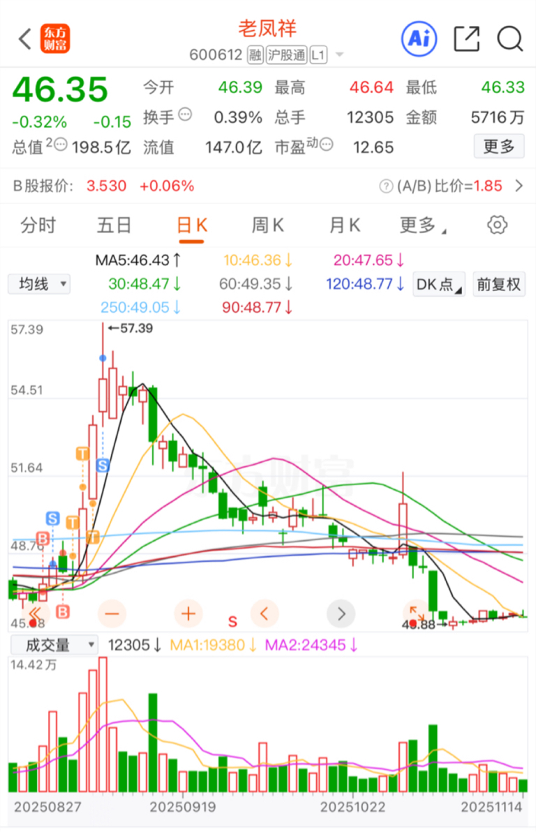 $老凤祥(SH600612)$ 太恐怖咯!等等再入手