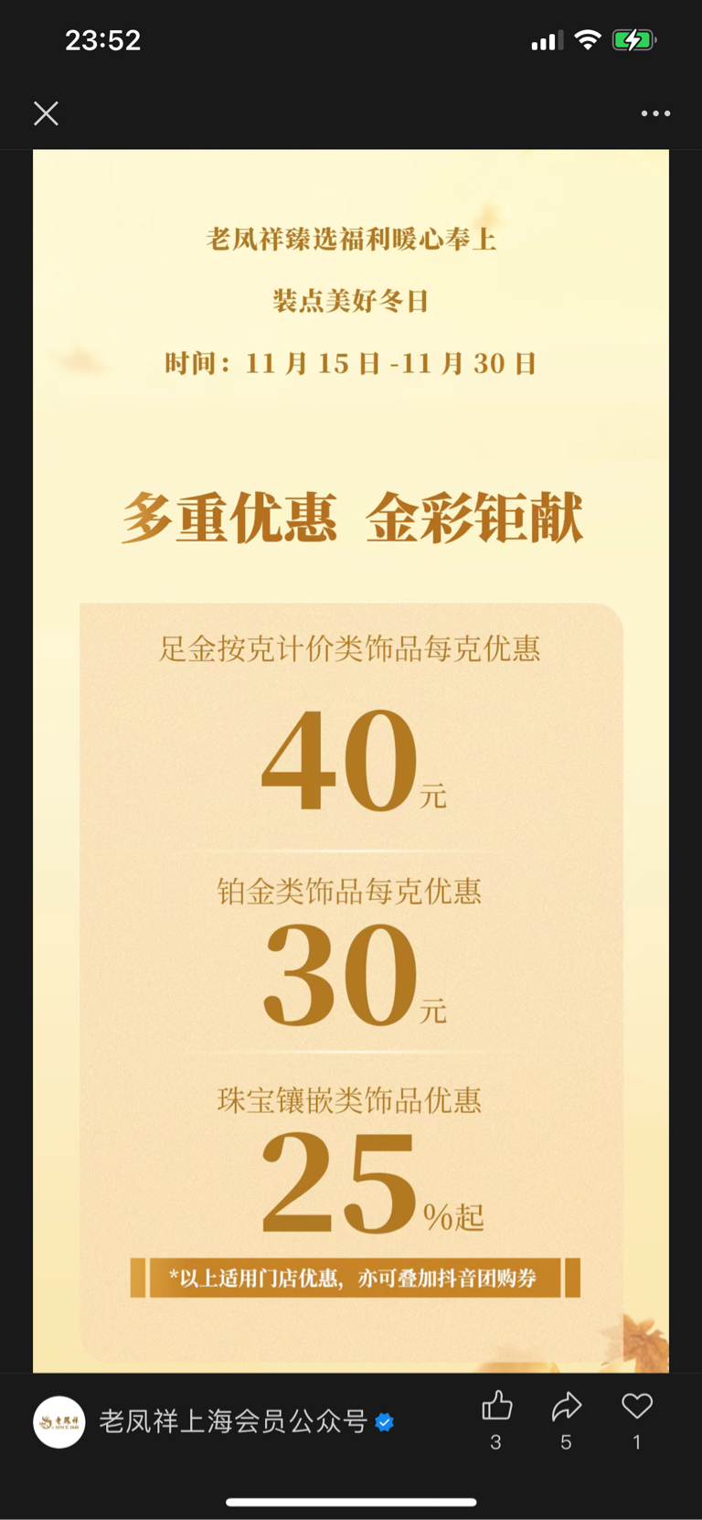 $老凤祥(SH600612)$ 忍不住,搞活动了