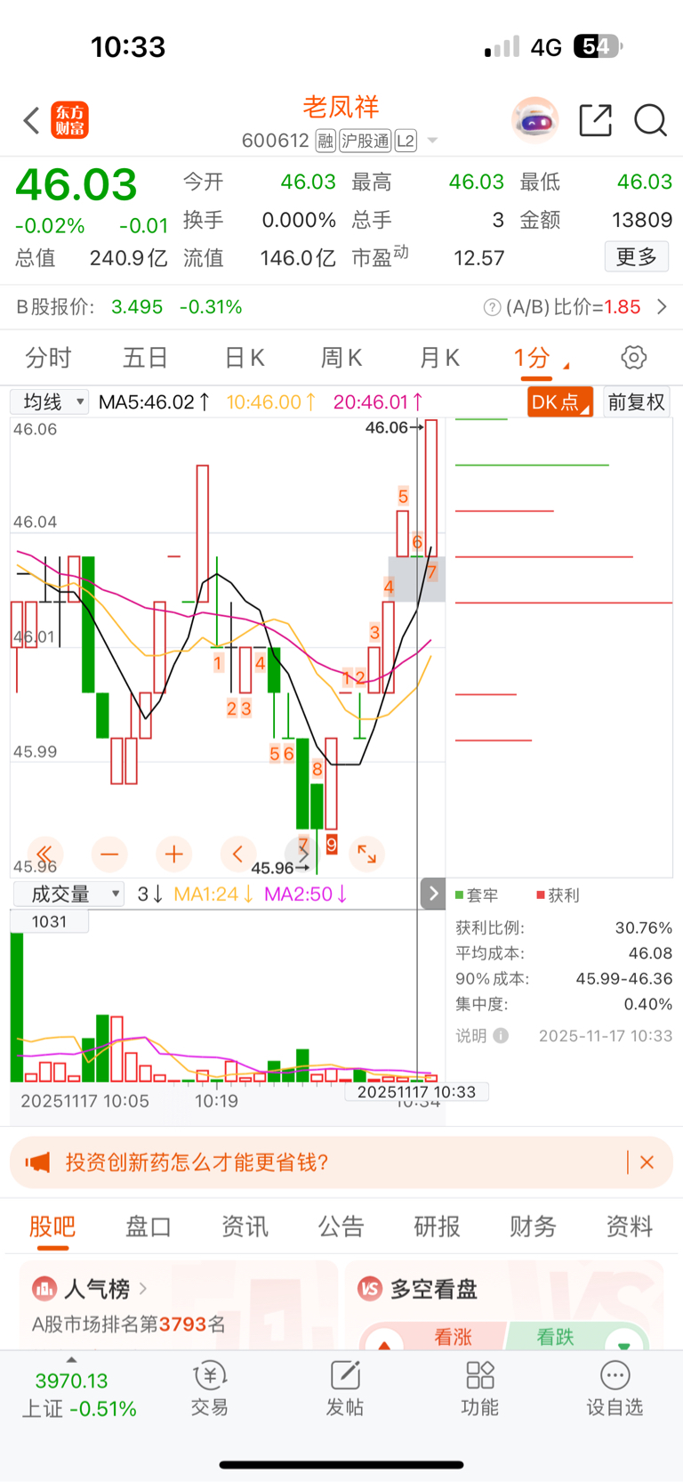 $老凤祥(SH600612)$ 僵尸股1分钟几万块的交易量