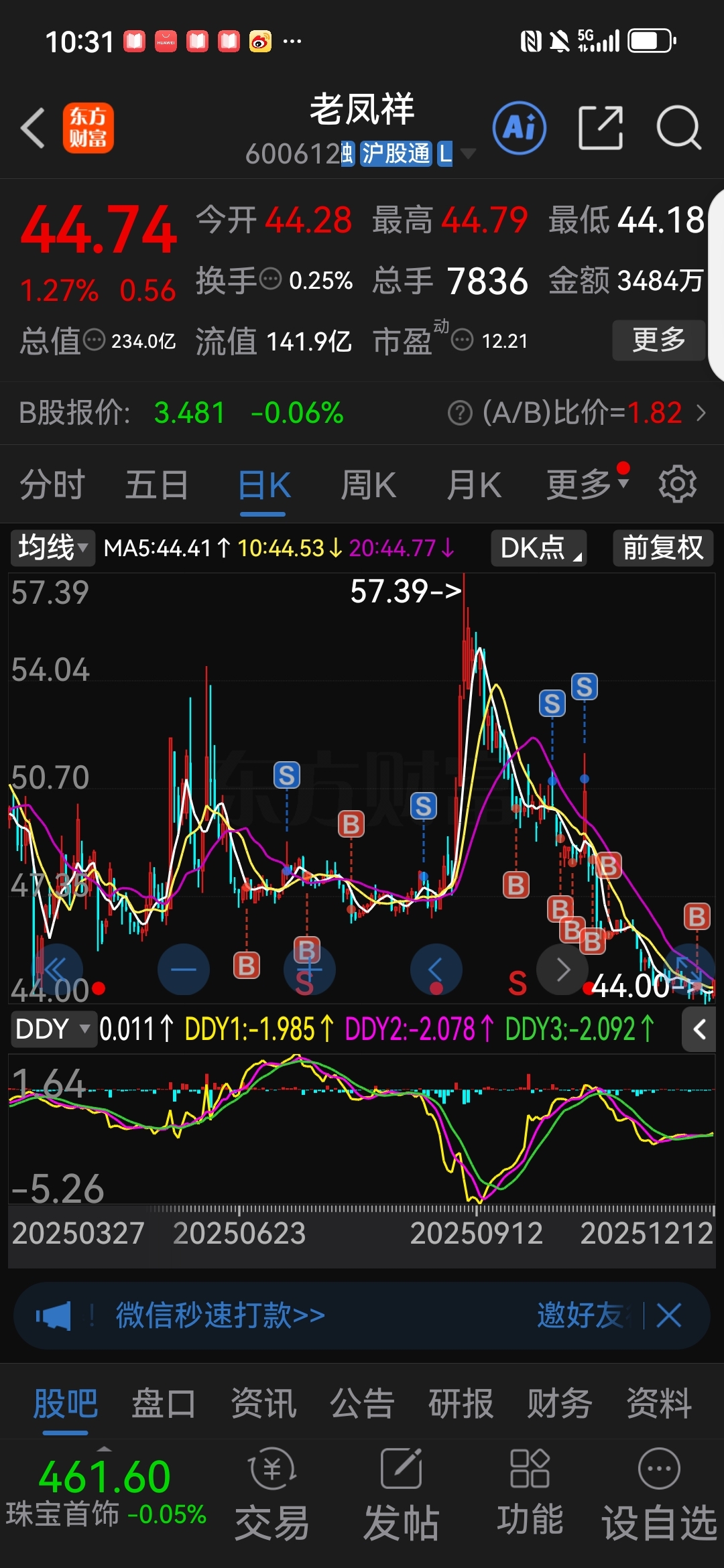 $老凤祥(SH600612)$ 不会涨停吧今天