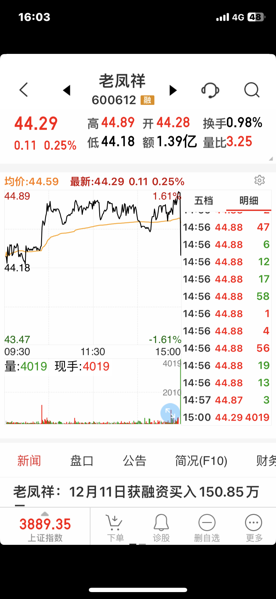 不好意思!抱歉了各位祥粉!尾盘本来是报单45.28买入!错写成44.28卖出!全部成交了!