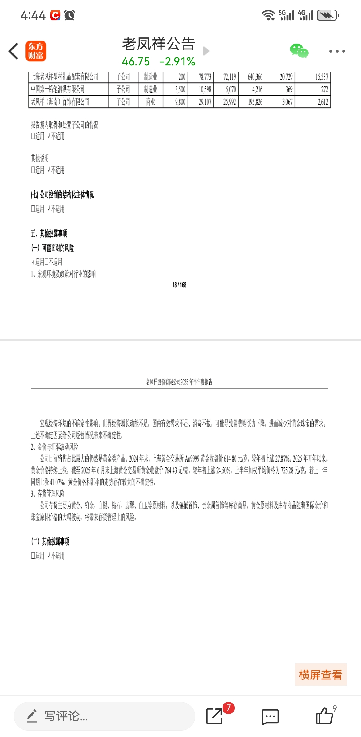 $老凤祥(SH600612)$ 库存以黄金、白银为主,25年Q2中报