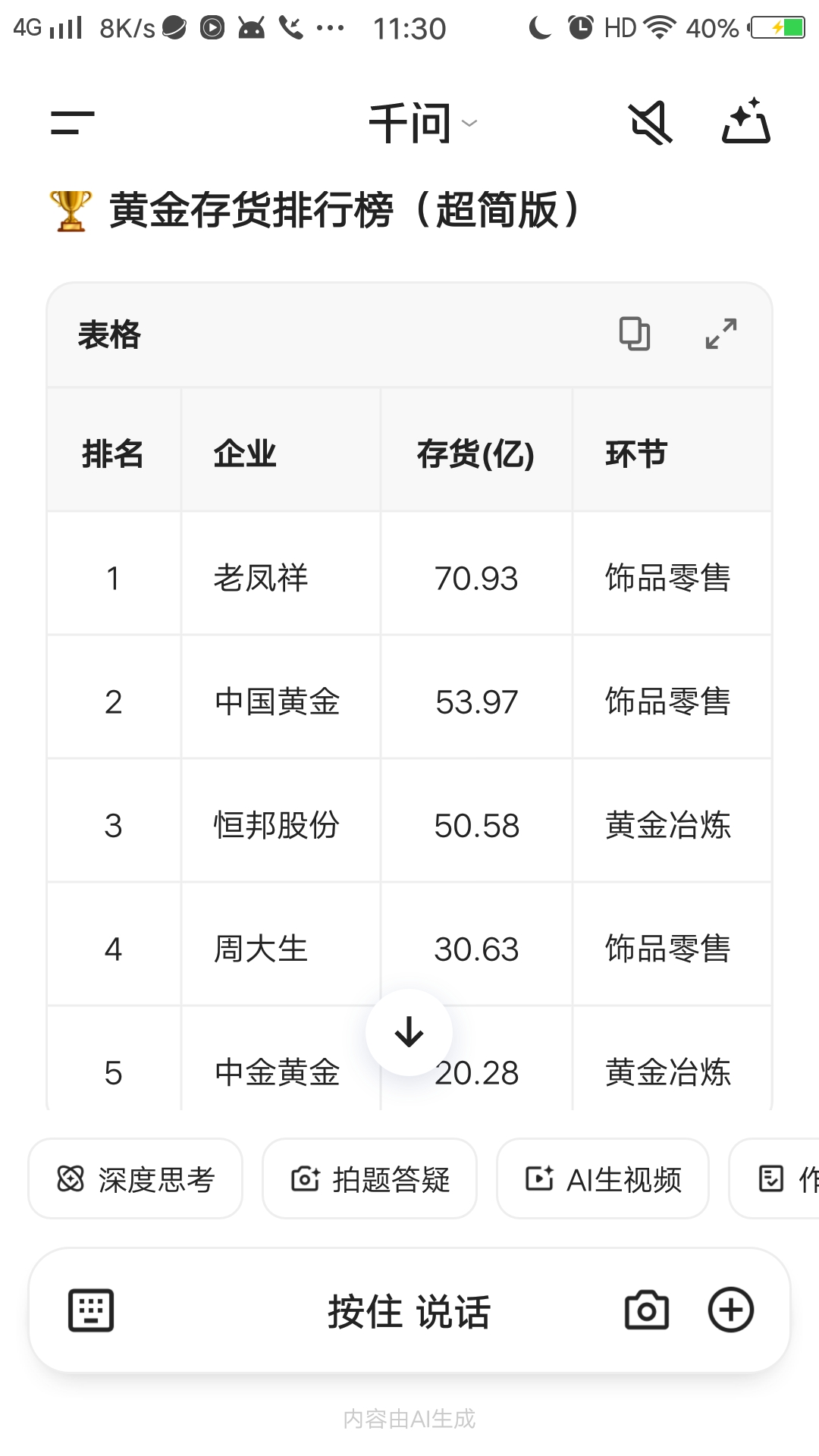 $老凤祥(SH600612)$ 两市唯一价值低估黄金股老凤祥去年库存70亿。排名第一。股价50按现在黄金估值净资产估计都有50了,有的金矿一年产值才十几亿。等把矿变成黄金风口都过了。