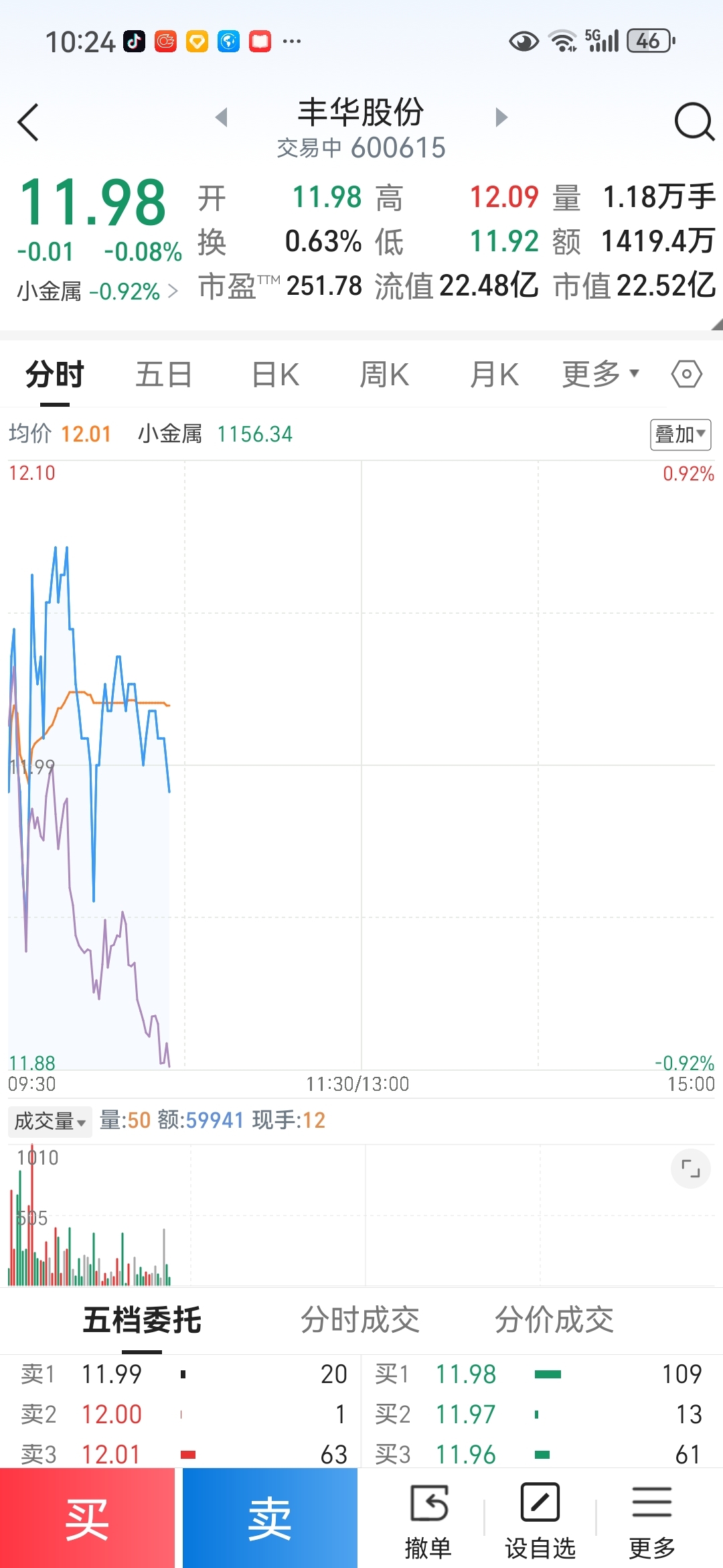 $丰华股份(SH600615)$ 止跌看涨11.98