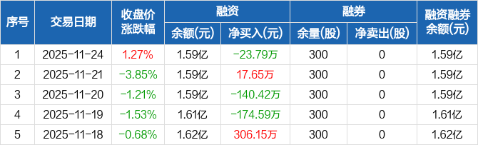 金枫酒业:融资净偿还23.79万元,融资余额1.59亿元(11-24)