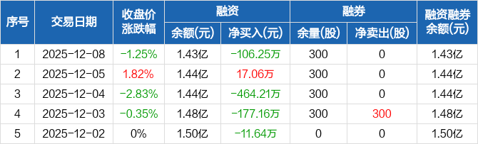 金枫酒业:融资余额1.43亿元,创近一年新低(12-08)