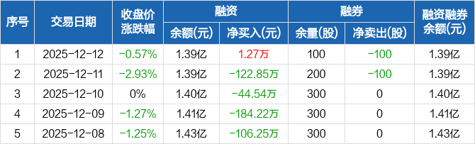 金枫酒业:融资净买入1.27万元,融资余额1.39亿元(12-12)