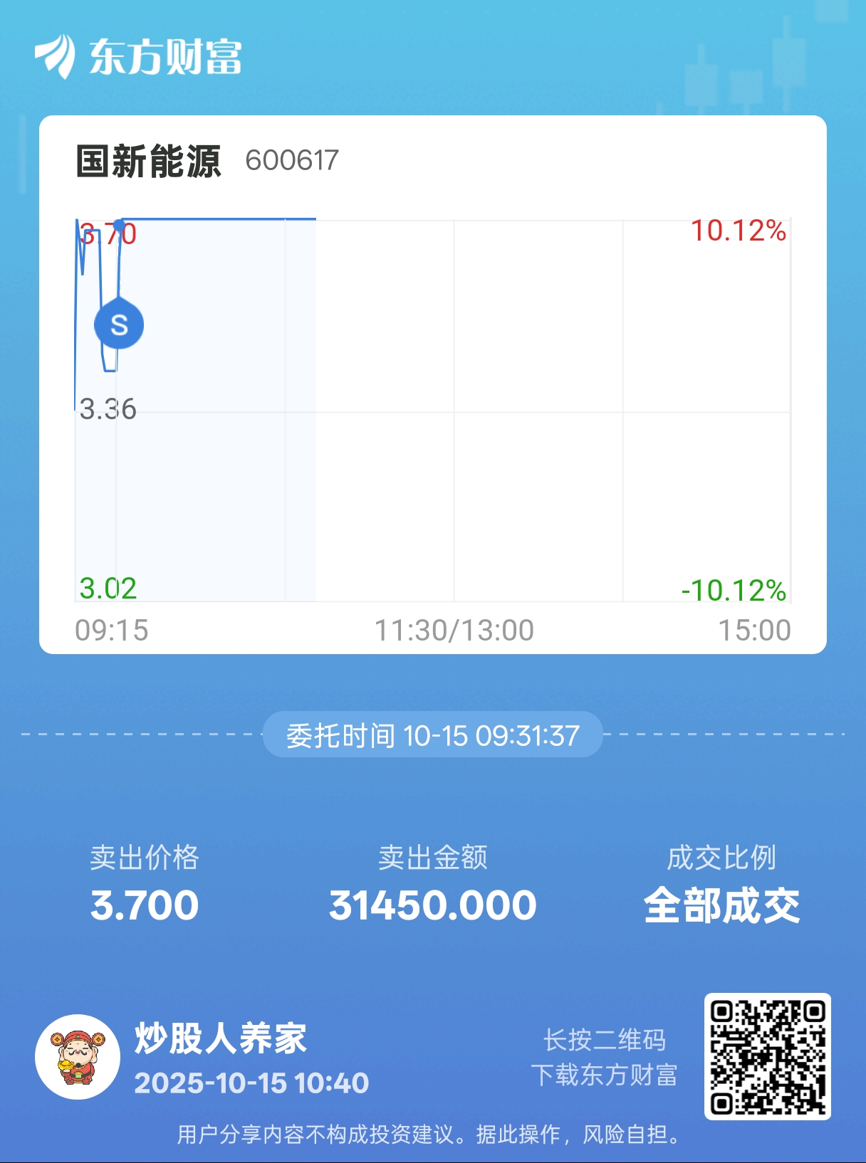 温馨提示: 1.根据《证券法》规定,禁止编造、传播虚假信息或者误导性信息,扰乱证券市场;2.用户在本社区发表的所有资料、言论等仅代表个人观点,与本网站立场无关,不对您构成任何投资建议。用户应基于自己的独立判断,自行决定证券投资并承担相应风险。《东方财富社区管理规定》
