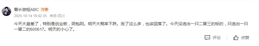 昨天选的一晋二的标的600617,今天虽然高开不足,但开盘后快速上攻涨停,立马追入。盘前有准备,盘中不慌乱。明天应该有溢价,晋三板的希望不大。