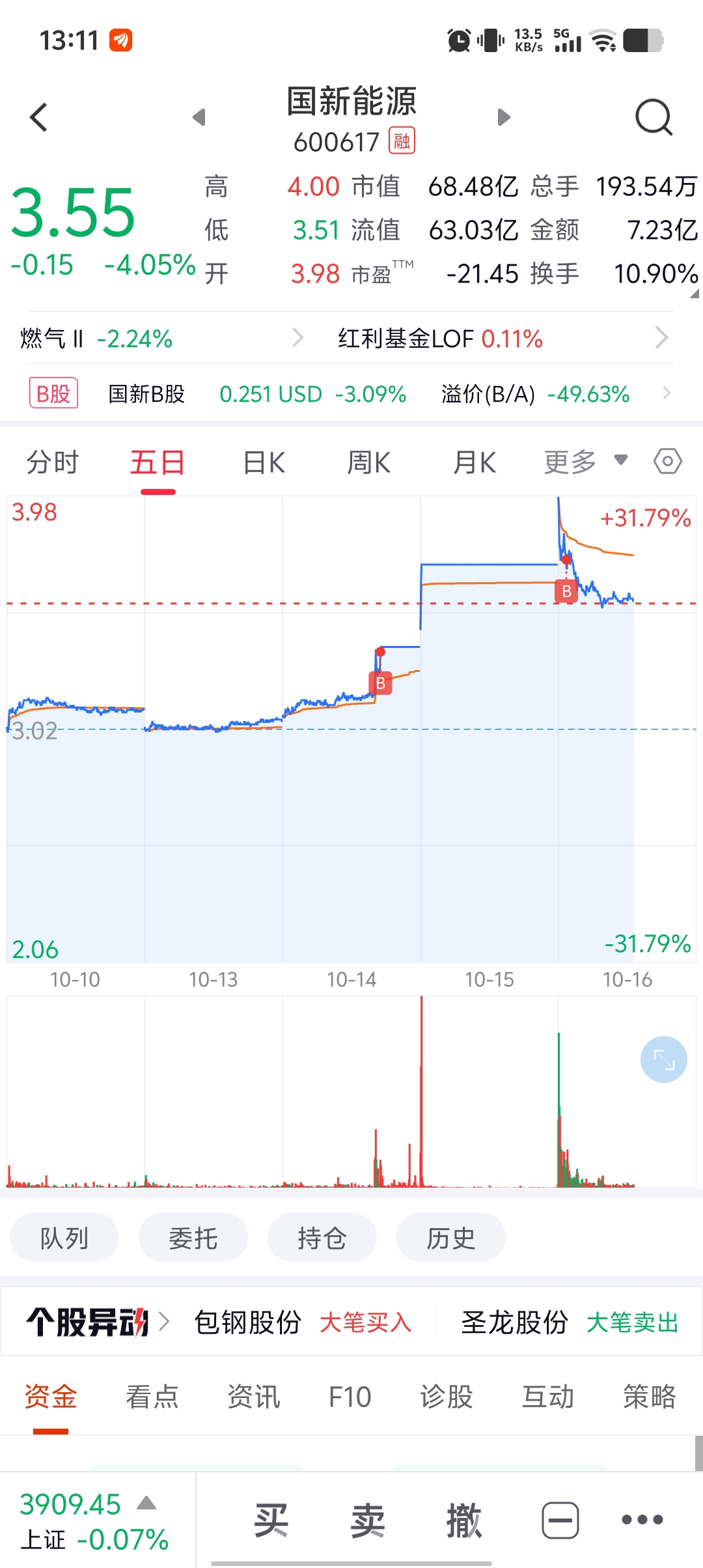 $国新能源(SH600617)$ 市值不到80亿,坚绝不跑