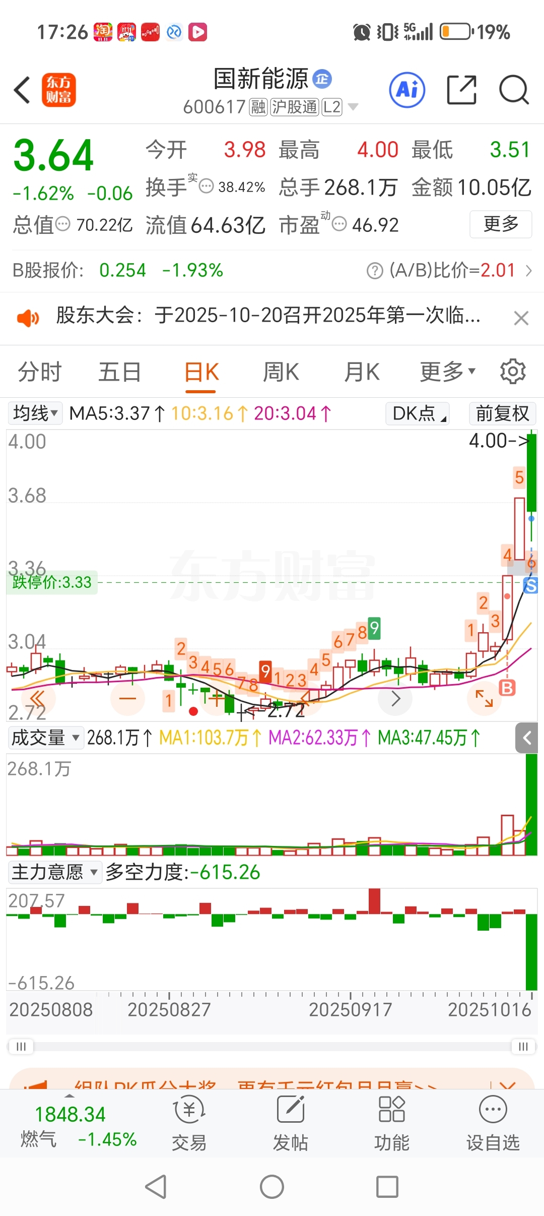 $国新能源(SH600617)$ 走了,垃圾主力