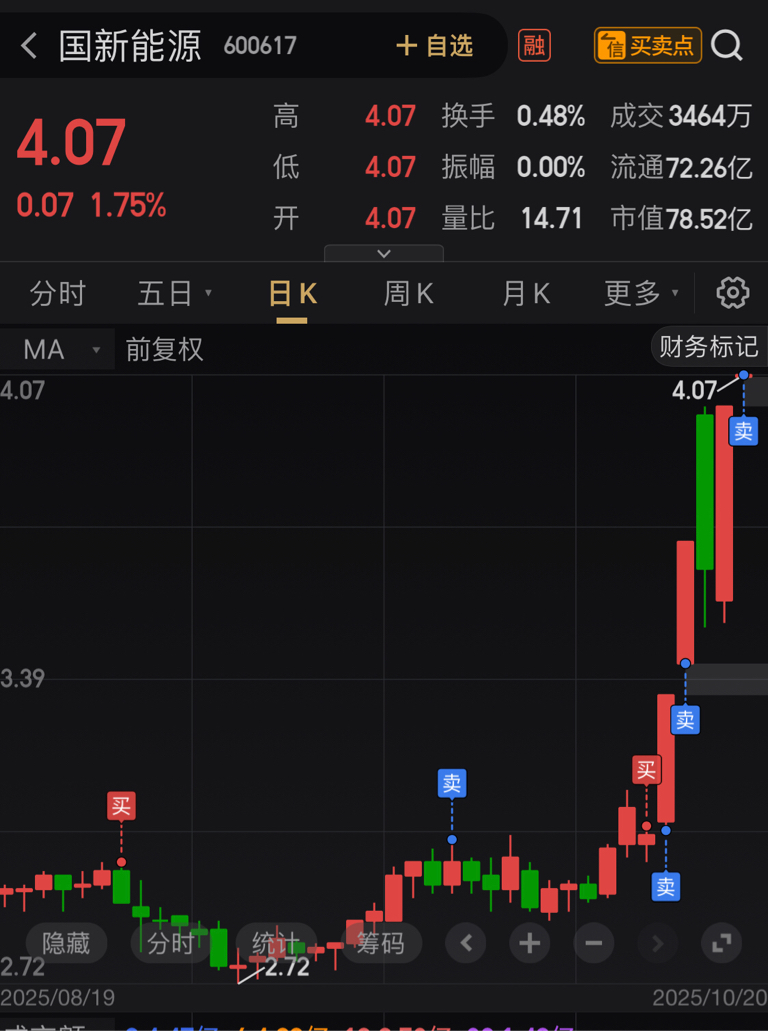 $国新能源(SH600617)$ 第一支猪仔,出栏。再见