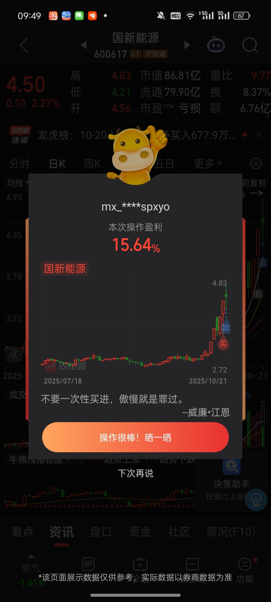 $国新能源(SH600617)$ 差1分都不拉涨停的票,留下的发财
